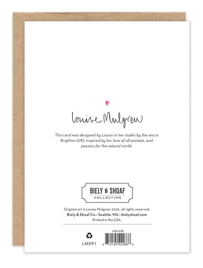 About the artist: Working with gouache and watercolor, Louise designs in her tiny studio in Brighton, England, inspired by her love of all animals, and passion for the natural world. Louise was named 2023 Artist of the Year by the USA Greeting Card Association.