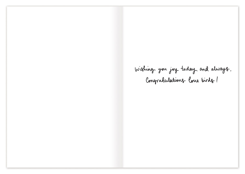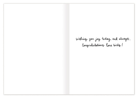 Inside verse: Wishing you joy today and always. Congratulations, love birds!