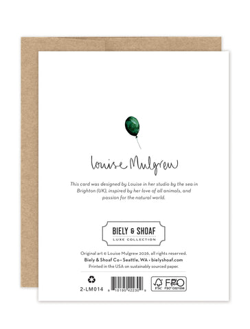 About the artist: Working with gouache and watercolor, Louise designs in her tiny studio in Brighton, England, inspired by her love of all animals, and passion for the natural world. Louise was named 2023 Artist of the Year by the USA Greeting Card Association.