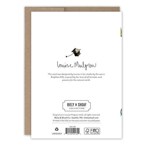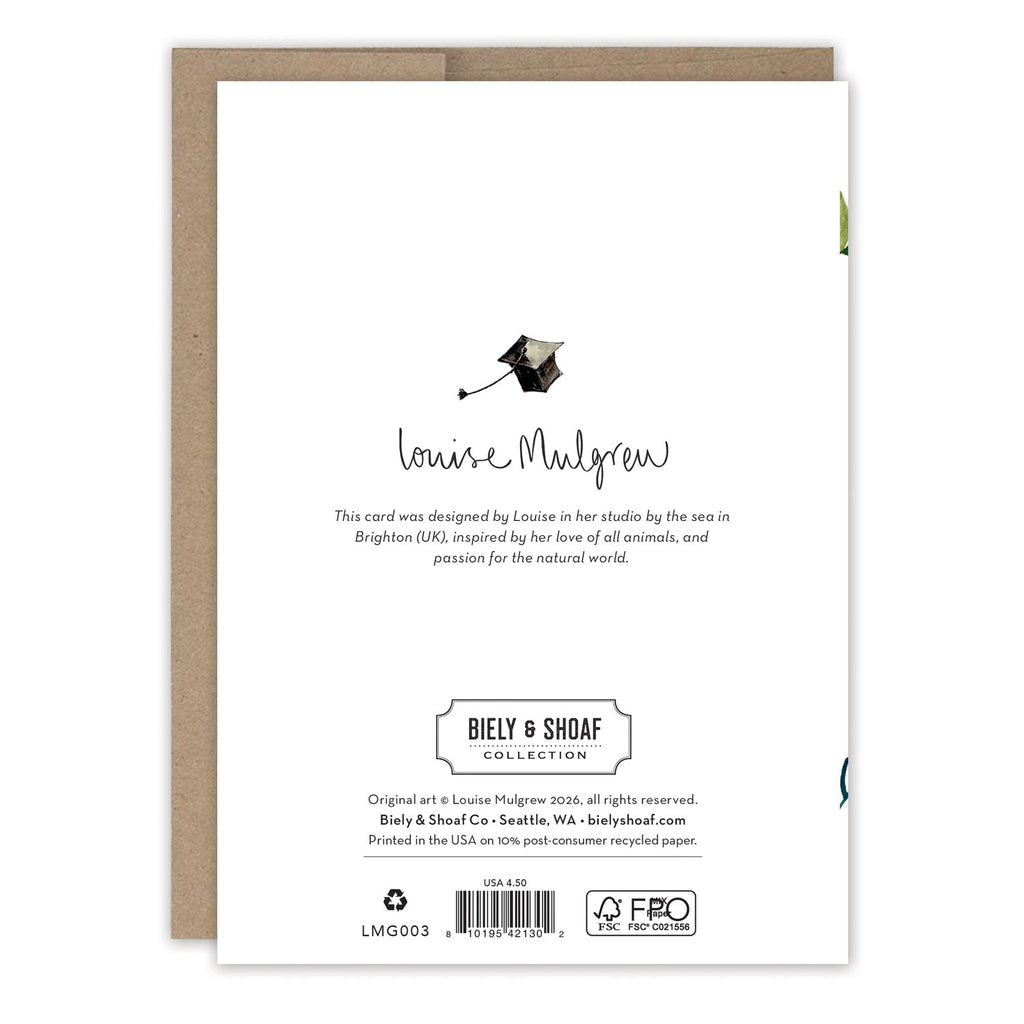 About the artist: Working with gouache and watercolor, Louise designs in her tiny studio in Brighton, England, inspired by her love of all animals, and passion for the natural world. Louise was named 2023 Artist of the Year by the USA Greeting Card Association.