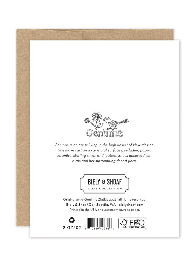 Introducing our A2 Luxe Collection! Printed on premium heavyweight paper and finished with gold foil details. Blank inside for your own message.