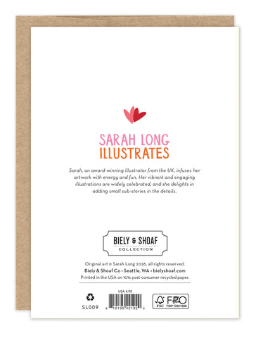 About the artist: Sarah Long, an award-winning illustrator from the UK, infuses her artwork with energy and fun. Her vibrant and engaging illustrations are widely celebrated, and she delights in adding small sub-stories in the details.