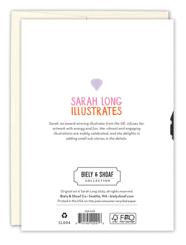 About the artist: Sarah Long, an award-winning illustrator from the UK, infuses her artwork with energy and fun. Her vibrant and engaging illustrations are widely celebrated, and she delights in adding small sub-stories in the details.