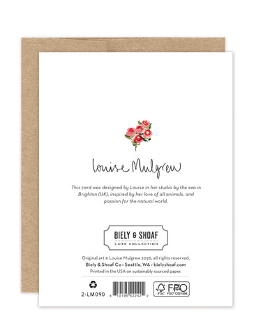 About the artist: Working with gouache and watercolor, Louise designs in her tiny studio in Brighton, England, inspired by her love of all animals, and passion for the natural world. Louise was named 2023 Artist of the Year by the USA Greeting Card Association.