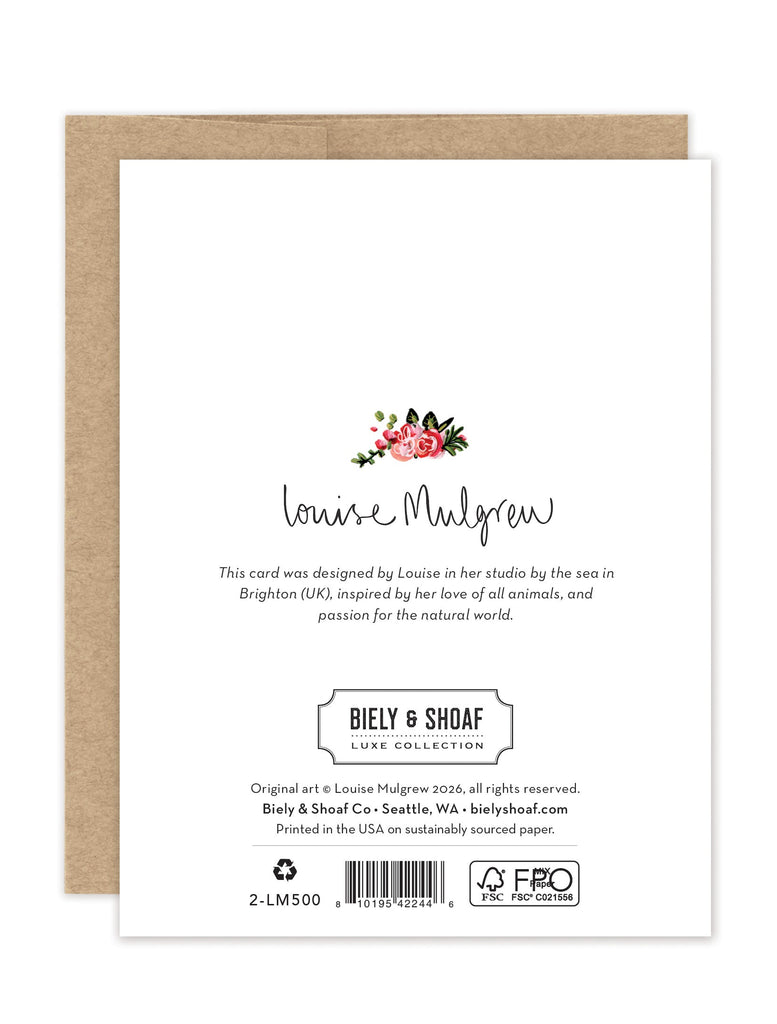 About the artist: Working with gouache and watercolor, Louise designs in her tiny studio in Brighton, England, inspired by her love of all animals, and passion for the natural world. Louise was named 2023 Artist of the Year by the USA Greeting Card Association.